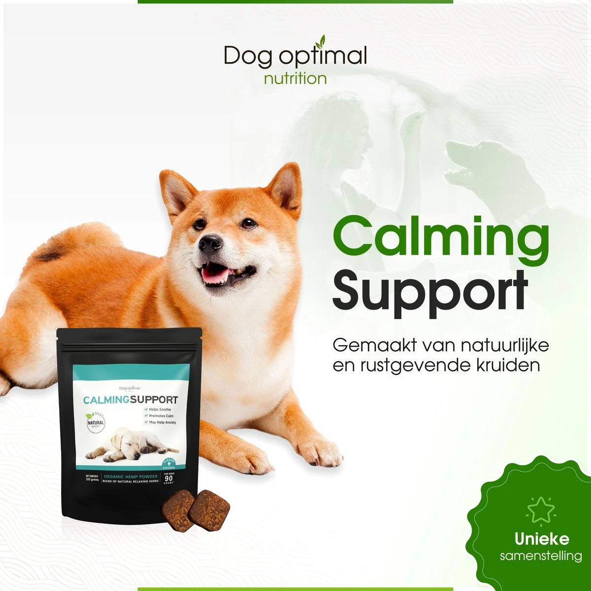 Gelukkig kan het supplement Calming Support van Dog Optimal hier ondersteuning bij bieden. Door het gebruik van 100% natuurlijke ingrediënten als valeriaan, kamille en melatonine zal de hond zich makkelijker kunnen ontspannen en zich minder gestresst of nerveus voelen. Dit alles zonder de hond te versuffen!